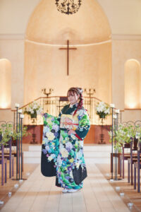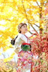 羽衣では、成人式前撮りを「一生の思い出」として最高の姿で写真に残すための「ロケーション撮影」を実施していますロケーション撮影とは、スタジオ内の撮影ではなく、カメラマンと屋外にお出かけしての撮影になります。羽衣の前撮りは成人式の約1年前の春と秋に行われるため、羽衣庭園の桜や紅葉といった日本の美しい四季を感じさせる季節感あふれる背景での撮影ができます。また、大泉町にある「ヴィラデマリアージュ太田」さん、佐野市にある「アルシオーネコート佐野」さん等の、結婚式場を使っての前撮りロケーション撮影も実施しているので、結婚式場の特別な雰囲気で撮影ができます。お嬢様は忘れられない感動的な写真を通じて、20歳の輝かしい瞬間を永遠に残すことができるでしょう