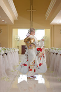 羽衣では、成人式前撮りを「一生の思い出」として最高の姿で写真に残すための「ロケーション撮影」を実施していますロケーション撮影とは、スタジオ内の撮影ではなく、カメラマンと屋外にお出かけしての撮影になります。羽衣の前撮りは成人式の約1年前の春と秋に行われるため、羽衣庭園の桜や紅葉といった日本の美しい四季を感じさせる季節感あふれる背景での撮影ができます。また、大泉町にある「ヴィラデマリアージュ太田」さん、佐野市にある「アルシオーネコート佐野」さん等の、結婚式場を使っての前撮りロケーション撮影も実施しているので、結婚式場の特別な雰囲気で撮影ができます。お嬢様は忘れられない感動的な写真を通じて、20歳の輝かしい瞬間を永遠に残すことができるでしょう